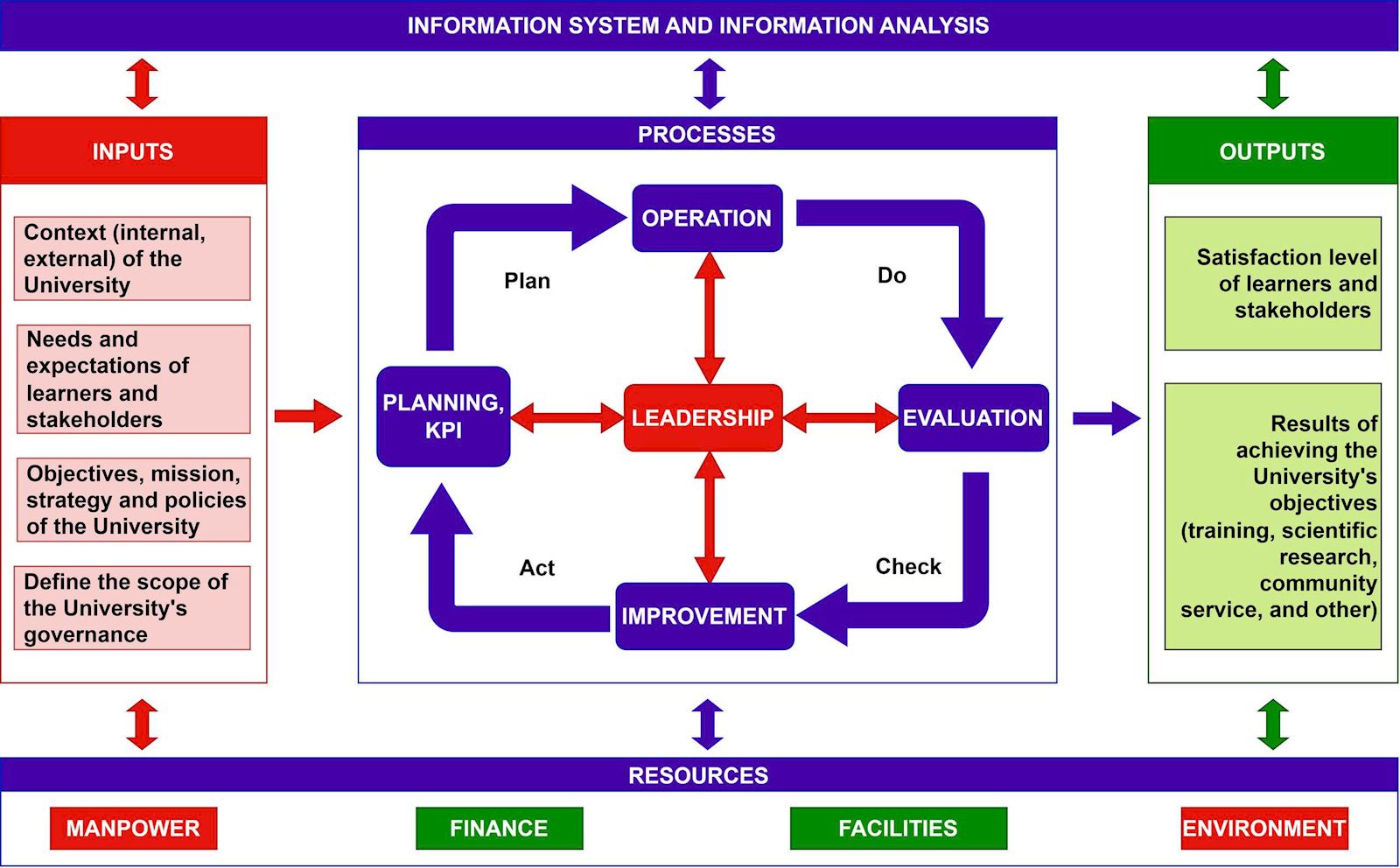 HUCE identifies quality assurance (QA) as a core principle underpinning all institutional activities. The internal QA system operates in accordance with the PDCA (Plan–Do–Check–Act) cycle and is institutionalized through the Quality Management Regulation. The system is designed to achieve the following objectives: